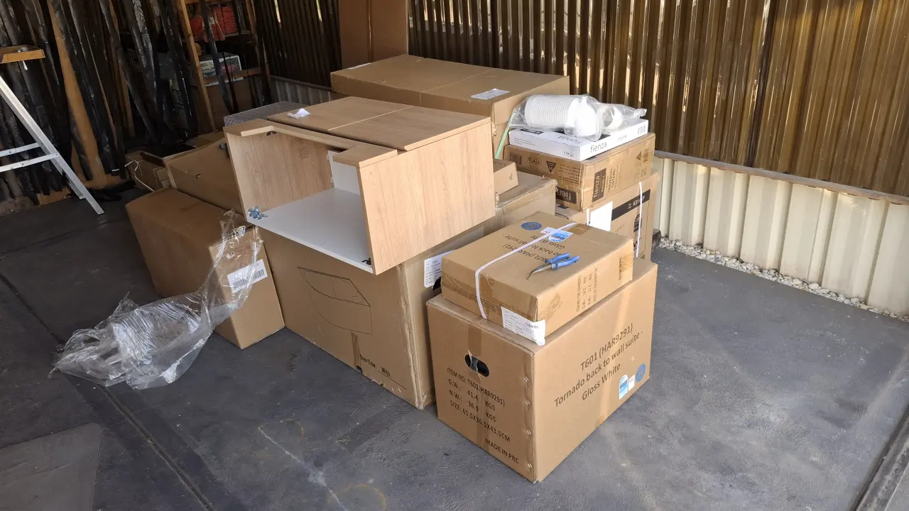 Project: To make room in the carport so the ordered renovation goods can land and stack before they're needed in 3 weeks. We already picked up the floor and wall tiles in two different trips to Sydney. Period: 02 Aug - 12 Sep 2025. |